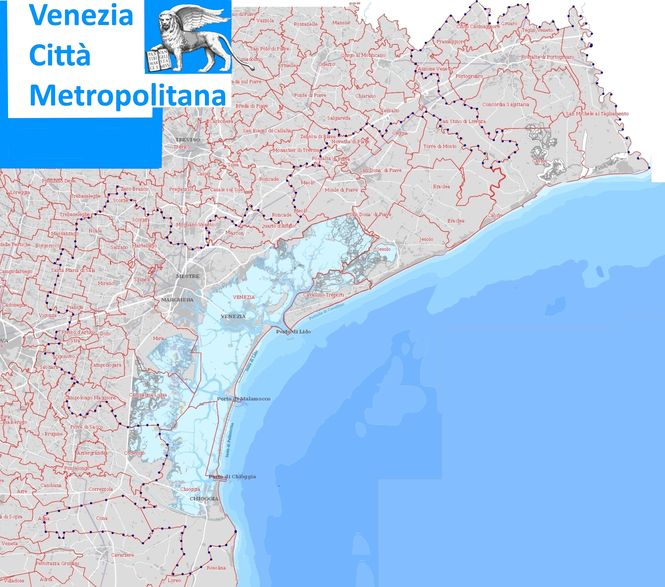 Annone Veneto Campagna Lupia Campolongo Maggiore Camponogara Caorle Cavallino Treporti Cavarzere Ceggia Chioggia Cinto Caomaggiore Cona Concordia Saggitaria Dolo Eraclea Fiesso D'Artico Fossalta di Piave
