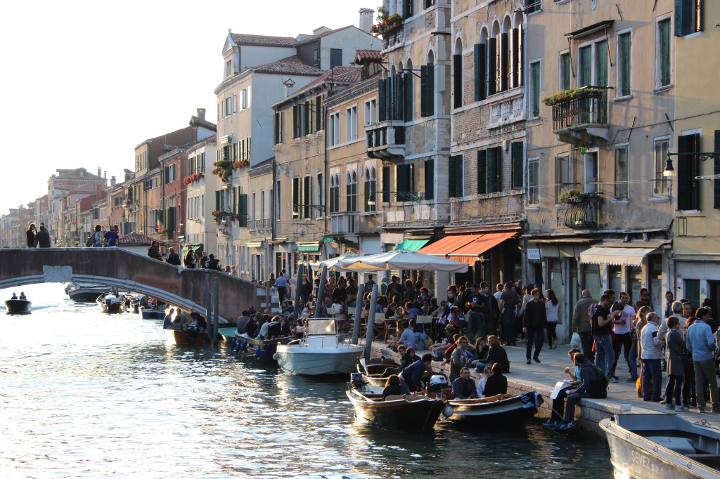 Infine ecco gli utenti. Bello stare seduti fino a tardi d’estate, lungo la Fondamenta, sorseggiando un bicchiere di Pinot grigio gelato, mentre si spiluccano, a seconda delle possibilità delle nostre tasche, cicchetti golosi o piatti raffinati. Seduti o in piedi (perché magari seduti costa di più), persi e distanti da tutto, con l’amore della nostra vita, o con il gruppo di amici con cui si parla di viaggi fantastici o di rivoluzioni impossibili … ma poi chi lo sa?